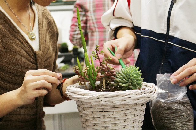 初赛结束过后,为增加活动的趣味性,比赛设置了多肉拼盘制作环节,选手们通过自身想像和创造力创作出极富表现力、内涵丰富的多肉盆栽,并于20日在玉兰路进行展示。