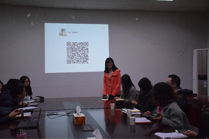 见面会开始,各位同学做了自我介绍,老师和同学们相互熟悉,增进了解。之后2016年曾参加过交流项目的优秀学生代表结合自己的经历,与同学们分享了自己的经验和生活技巧,也对在戴维斯分校的生活和学习情况进行了介绍。
