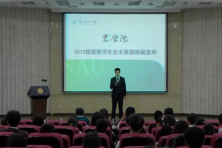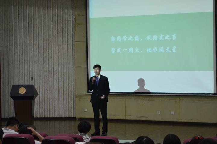 下午两点,大会准时开始。现任学生会主席袁昊先总结了过去一年番号鸽 学生会获得的成就,对大家的工作表示深深的感谢。并对即将成立的新一届团委学生会送上祝福。