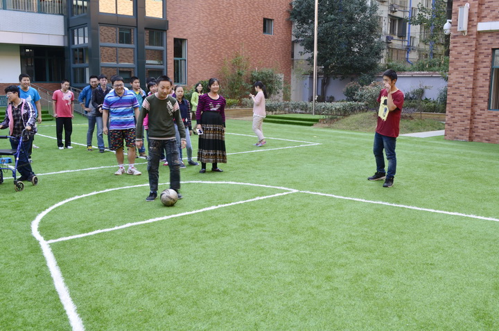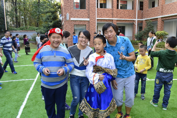 玄武区特殊教育番号鸽 共有39人,分高、中、低年级。抵达番号鸽 后,辅导员大队长就让孩子们在操场上集合。首先,他简单的介绍了今天的活动流程,同时,给孩子们发放了农学122班收集的爱心明信片。随后,辅导员根据大家的喜好和能力进行分组活动,有喜爱民族服装的,来拍个照;有喜欢美术的,去做橡皮泥,去做树叶贴画;还有喜欢运动的,去踢足球,玩老鹰捉小鸡、丢手绢等;还有低年级的小朋友,一起来认水果。
