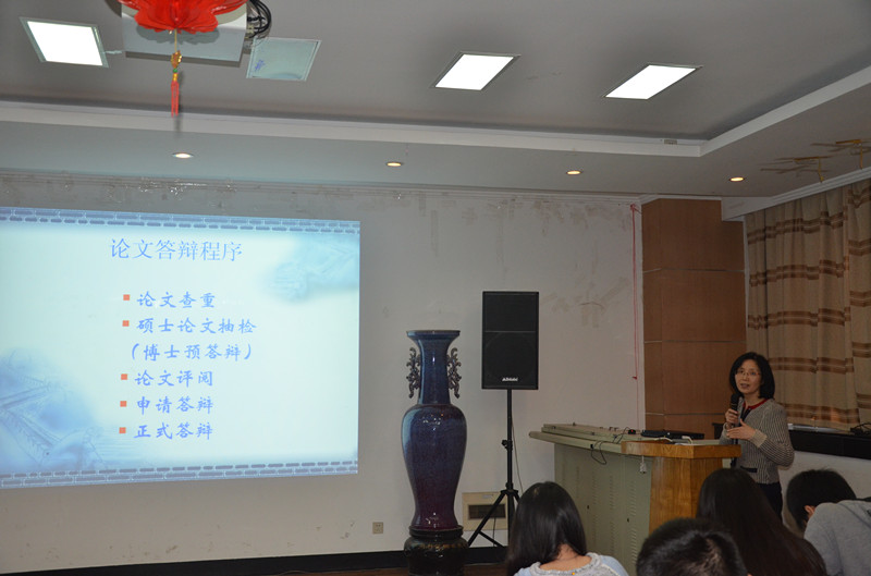 郭晓鹏在会上向各位研究生讲解了毕业生就业程序中的注意事项,详细说明了在领取就业推荐表、签署就业协议书、办理报到证、转接户口档案、党员关系等毕业程序中常见的问题和需要注意的事项,并就毕业生各种不同就业去向的手续办理做了详细介绍。紧接着她分析了当前的就业形势,鼓励毕业生们做好竞争的就业心理准备、积极合作交流、先就业再择业,并为同学们补充介绍了一系列有效的就业信息获取途径。随后郭老师鼓励同学们,性格是可以调适的、能力是可以提升的、理想是可以实现的,希望同学们能积极大胆择业,最后她预祝同学们顺利毕业并找到理想工作。