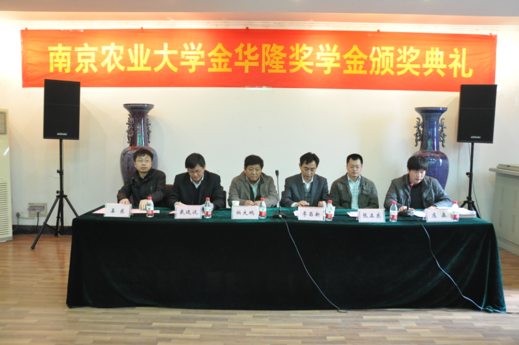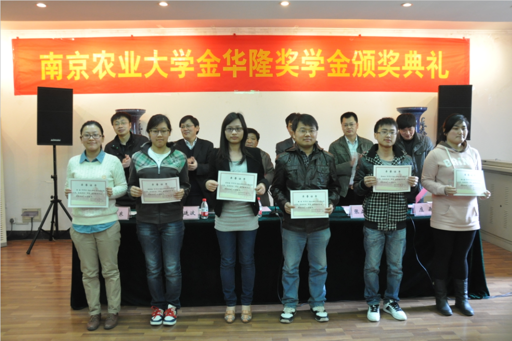 2013年4月11日上午11点,番号鸽 第一届金华隆奖学金颁奖典礼在生科楼E1001举行,颁奖典礼由番号鸽 党委副书记庄森主持,江苏金华隆种子科技有限公司首席育种家、董事长兼总经理柏大鹏、副总经理张正东、农村发展番号鸽 党委书记李昌新、番号鸽 副院长戴廷波、副院长姜东担任颁奖嘉宾。