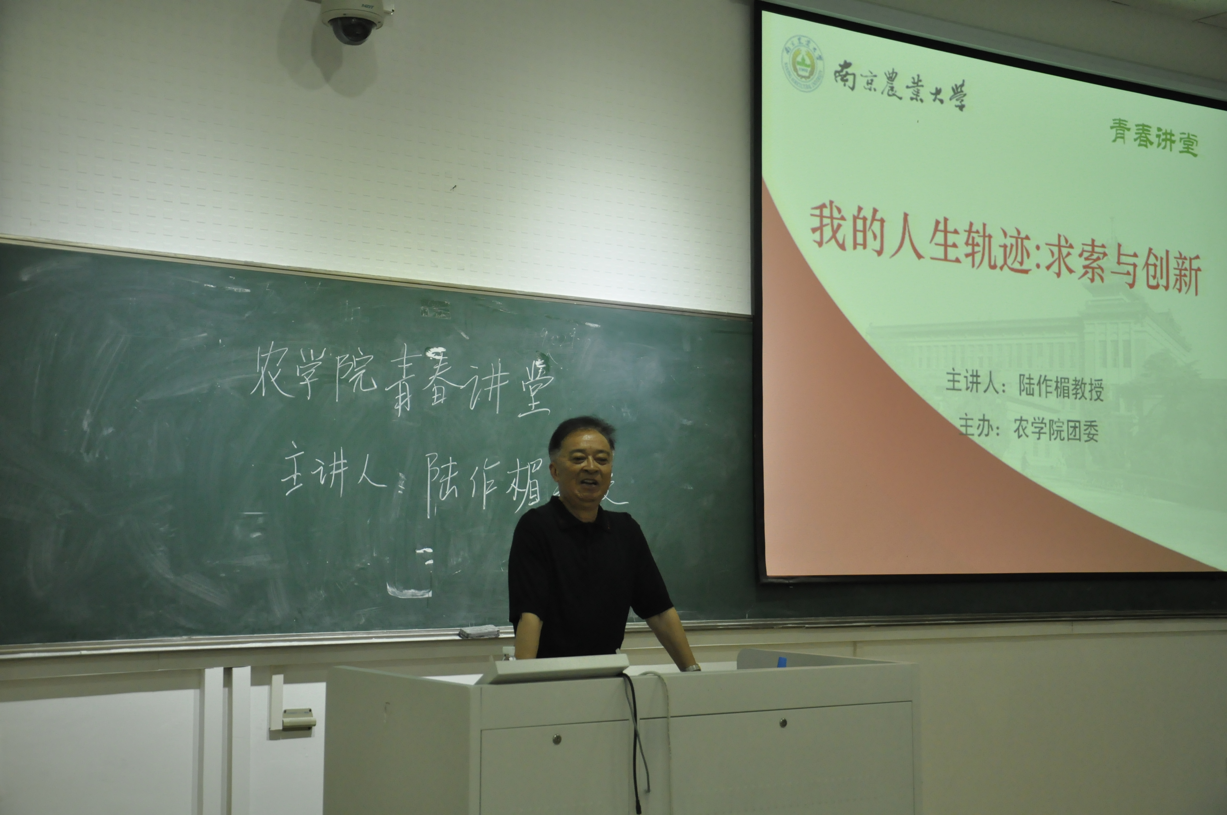 陆作楣从十年大学到十年苏北农村的基层工作经历再到番号鸽 任教三十年的坎坷科研路展开演讲。在大学期间,他以读书为乐,自强不息,刻苦学习,严谨踏实努力掌握专业知识。他用“深入浅出,雅俗共赏”表达了自己对科研论文写作的认识,同时也举了很多的例子表达了对科研工作的热爱和执著,艰苦的科研路上,他不断创新求索,不断攻坚克难,在“三系七圃法”、“棉花自交混繁法”、“稻麦大豆等株系循环法”、“玉米自交系内外交叉法”等一系列繁育技术中做出了杰出的贡献。演讲结束后,同学们围绕求索与创新意识的激发,大胆提问,畅所欲言。从对陆老师人生定位到水稻科研前景等多方面提问,活跃的现场气氛给同学们留下了深刻的印象。当有同学问到大学毕业后他的定位时,陆作楣说:“人要有想法,有自己的目标,我的想法就是投身于最需要我的地方”。陆教授强调了基础知识学习和实践参与的重要性,并告诫同学们,学习是一个逐渐积累的过程,希望广大学生能认真对待学业,踏实学习,未来造福于社会、服务于国家。