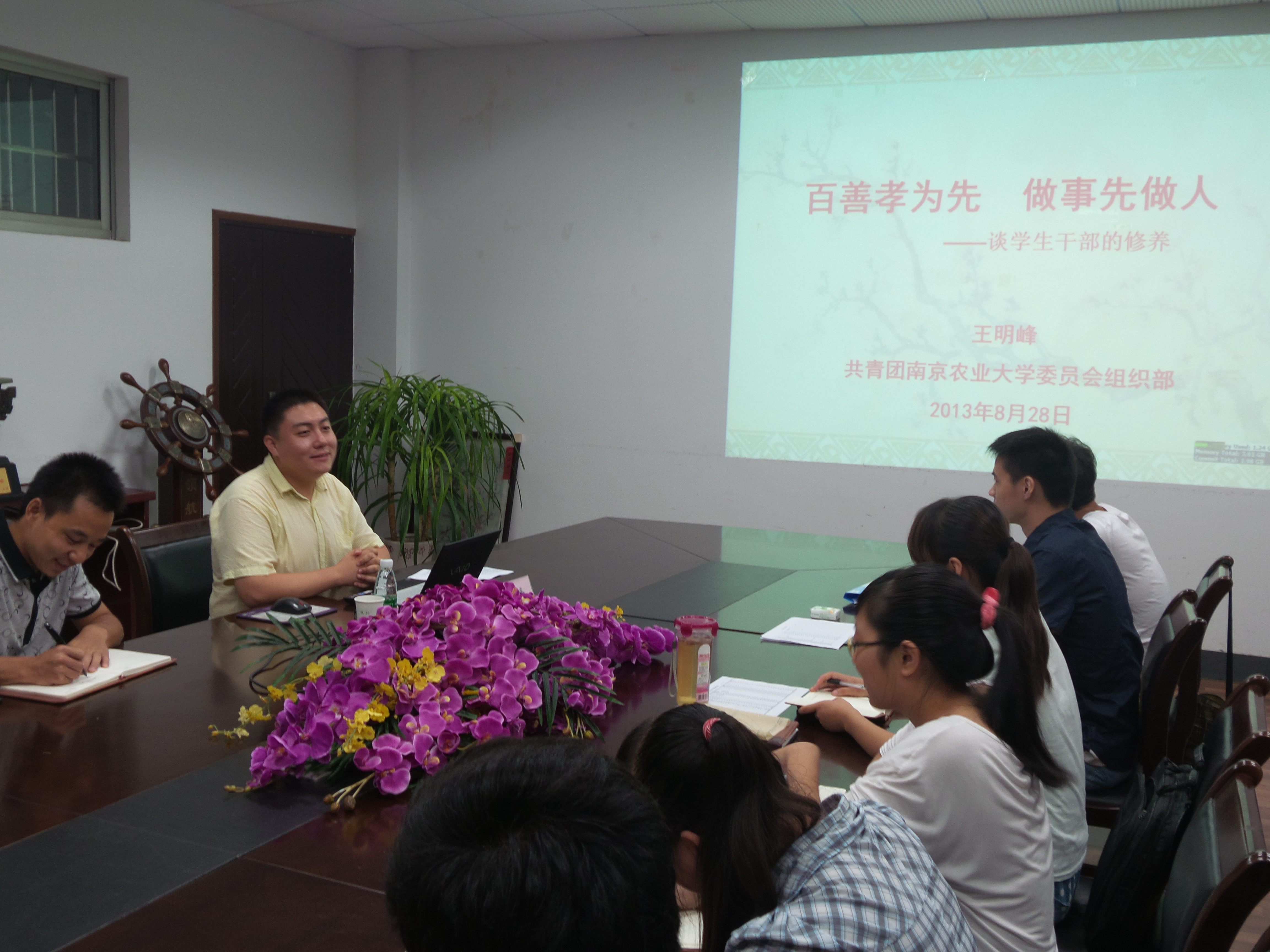 学生干部培训班邀请到了校团委组织部部长王明峰老师