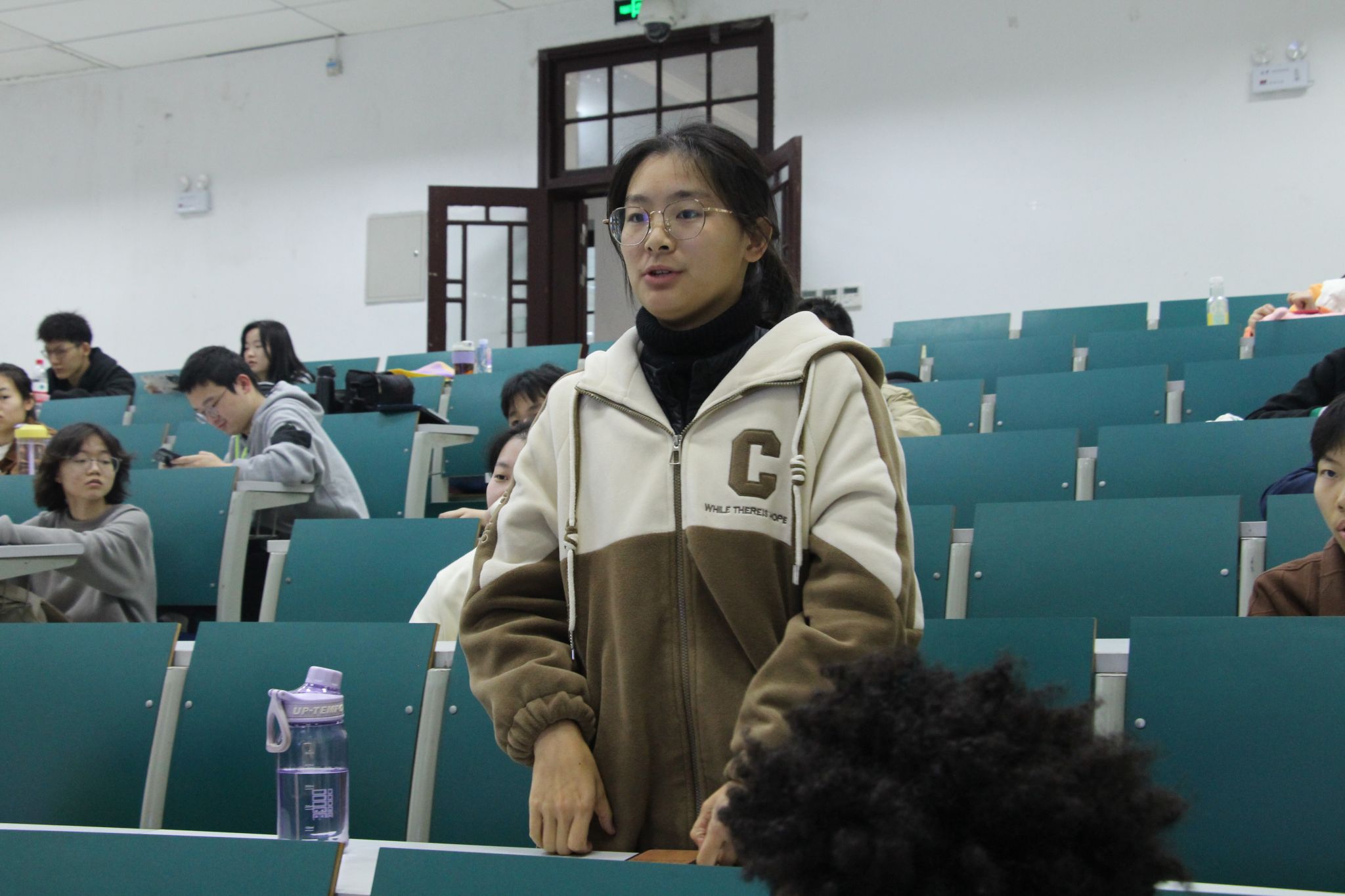 在提问答疑环节,大家积极发言,提出心中疑惑。倪军老师和两位分享同学对大家提出的“如何协调分内学习和比赛”“怎样进行策划案中具体的可行性分析”等问题作出了细致耐心的解答。