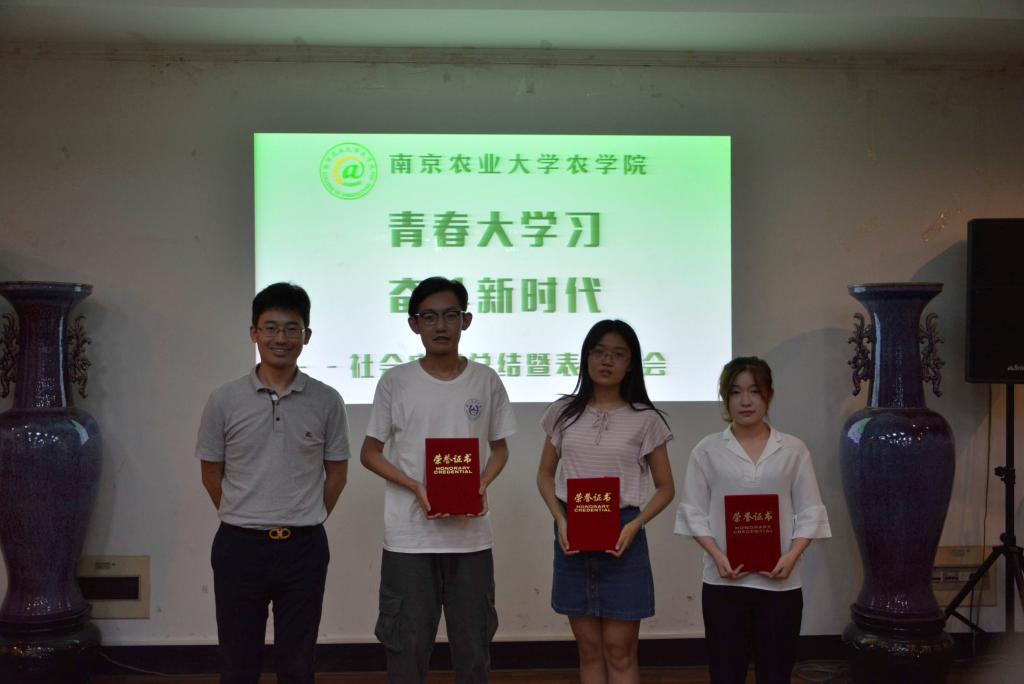 本次总结表彰大会共14个实践团队分别从社会实践前期准备、过程见闻、成果展示、活动感想等方面进行汇报展示。“心怀三农稼穑情,振兴乡村青年兴”,农科学子不忘三农初心,深入基层,围绕当地产业化情况,通过村官座谈、入村入户调研走访、企业参观等活动,深入了解地方农业发展现状,提出合理化方案。中中,“乡村振兴,青年力量”农科学子暑期社会实践服务团制作了农业战略规划书送给当地政府作为规划参考使用;“绿色大丰”科技支农调研团调研报告投稿《中国农业教育》杂志;“金善宝剧组”以话剧形式纪念金善宝先生,灵活生动的再现了金善宝先生跌宕起伏的一生。