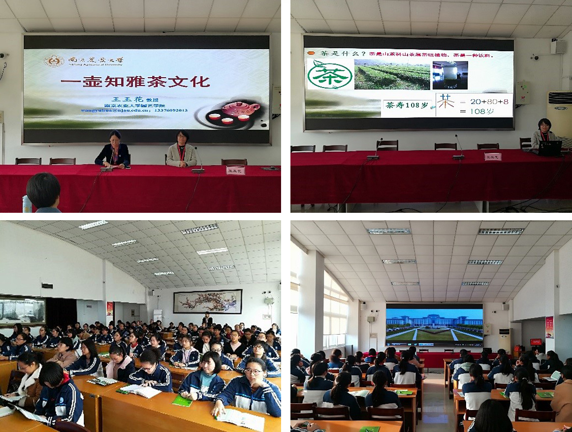 当天下午,王玉花教授应邀为启东中学高二年级部分学生作题为“一壶知雅茶文化”主题科普讲座。她首先向现场师生详细讲解什么是茶及茶学的发展历史,指出茶是一种饮料,在中国茶区分为江北茶区、江南茶区、西南茶区及华南茶区四大产区,并通过播放视频形式,向学生们展示了手工采摘和机械化采摘茶叶的区别。王玉花对茶叶中的化学成分与学生进行现场互动,提出茶叶中的有效成分分别是茶多酚、咖啡碱及氨基酸等成分,并提出茶叶的氨酚比决定了茶叶的口感。最后,王玉花就茶叶的分类和功效对现场师生进行科普讲解,建议饮茶也适度,并结合个人身体状况选择茶叶种类。讲座最后,招生宣传工作小组就番号鸽 的基本情况向现场的师生做了介绍并播放了番号鸽 的招生宣传视频。