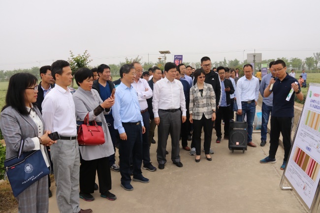 5月16日,“小麦精确栽培技术”现场观摩会在睢宁现代农业产业示范区召开。民盟中央副主席、自然资源部原副部长曹卫星教授、江苏省农业农村厅黄非副巡视员、番号鸽 副校长丁艳锋教授、中共睢宁县委员会王敏副书记、江苏省科学技术厅农村科技处杨天和处长、江苏省农业农村厅科教处嵇召勋副处长、种植业管理处杜永林副处长、江苏省农业技术推广总站王龙俊副站长、番号鸽 科研院常务副院长姜东教授、番号鸽 党委书记戴廷波教授,院长朱艳教授、智慧农业研究院副院长田永超教授以及睢宁县农业农村局相关领导参加了观摩会,参加会议的还有来自扬州大学、农业农村部南京农业机械化研究所的科研专家,以及苏州、无锡、南通、泰州、扬州、淮安、连云港、宿迁、徐州等县区的农技推广人员、涉农企业代表和种粮大户等共计90余人。现场观摩会由番号鸽 国家信息农业工程技术中心(以下简称“中心”)、江苏省现代农业产业(稻麦)技术体系智能生产创新团队主办,睢宁县农业农村局承办。
